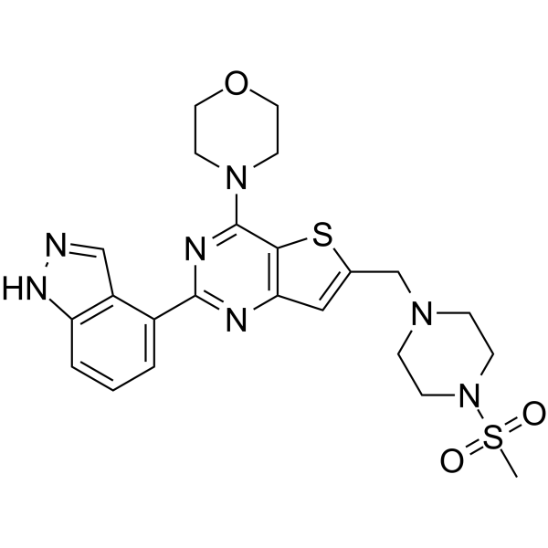 | 生物活性 | Pictilisib (GDC-0941) is a potent inhibitor of PI3Kα/δ with an IC50 of 3 nM, with modest selectivity against p110β (11-fold) and p110γ (25-fold). | ||||||||||||||||