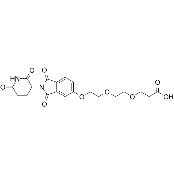| 生物活性 | Thalidomide-PEG3-COOH is a synthesized E3 ligase ligand-linker conjugate that incorporates the Thalidomide based cereblon ligand and a linker used in PROTAC technology. | ||||||||||||||||