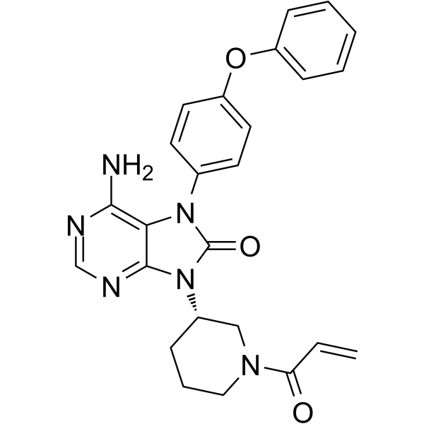 这个产品是ONO-4059的类似物,ONO-405是一种高效的选择性Btk抑制剂, IC50值为sub-nM级。