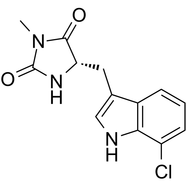 | 生物活性 | Necrostatin 2 S enantiomer is the S enantiomer of Necrostatin 2. Necrostatin 2 is a potent necroptosis inhibitor, acts as a RIPK1 inhibitor lacking the IDO-targeting effect. Target: RIPK1 [4] Necrostatin 2 is a potent in vitro necroptosis inhibitors (exemplified by 1, EC50-0.05 uM) that also were efficacious in an animal model of ischemic stroke. Many Necroptosis inhibitor derivatives are designed for researchers. Necroptosis is a regulated caspase-independent cell death mechanism that results in morphological features resembling necrosis. It can be induced in a FADD-deficient variant of human Jurkat T cells treated with TNF-a. 5-(1H-Indol-3-ylmethyl)-2-thiohydantoins and 5-(1H-indol-3-ylmethyl)hydantoins were found to be potent necroptosis inhibitors (called necrostatins). | ||||||||||||||||