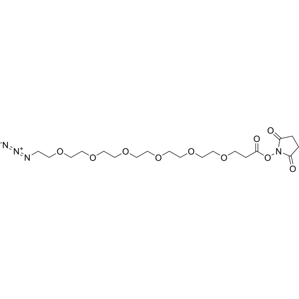 | 生物活性 | Azido-PEG6-NHS ester is a cleavable 6 unit PEG ADC linker used in the synthesis of antibody-drug conjugates (ADCs). Azido-PEG6-NHS ester is also a PEG- and Alkyl/ether based PROTAC linker that can be used in the synthesis of PROTACs. | ||||||||||||||||
