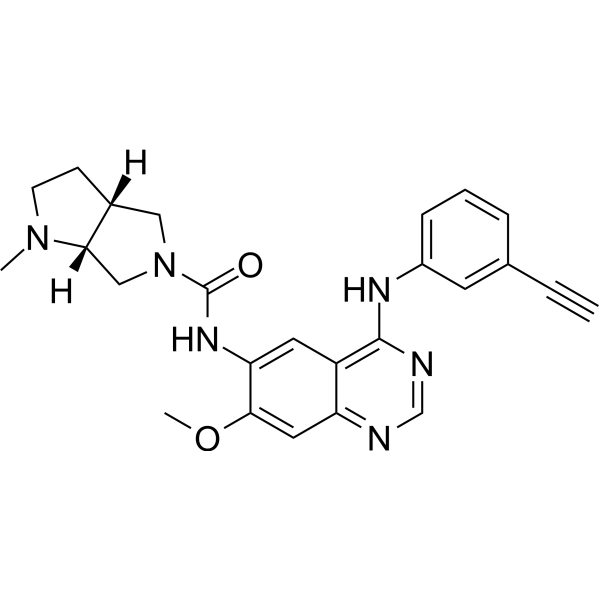 | 生物活性 | Theliatinib (Xiliertinib) is a potent, ATP-competitive, orally active and highly selective EGFR inhibitor with a Ki of 0.05 nM and an IC50 of 3 nM. Theliatinib has an IC50 of 22 nM for EGFR T790M/L858R mutant. Theliatinib shows >50-fold selectivity for EGFR than other kinases. | ||||||||||||||||