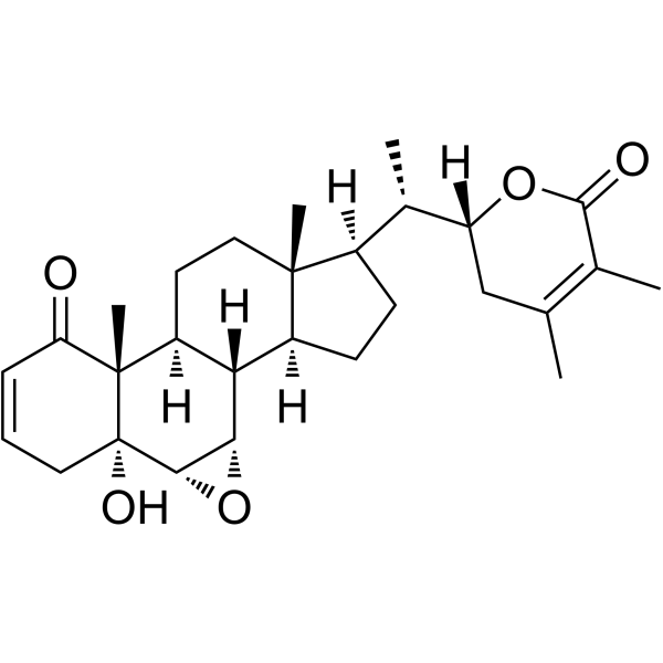 | 产品介绍 | Withanolide B 是 W. somnifera Dunal 的活性成分。Withanolide B 通过 ERK1/2 和 Wnt/β-catenin 信号通路促进 hBMSCs 的成骨分化。 Withanolide B 具有神经保护、抗关节炎、抗衰老和抗癌的作用。 | |||||||||