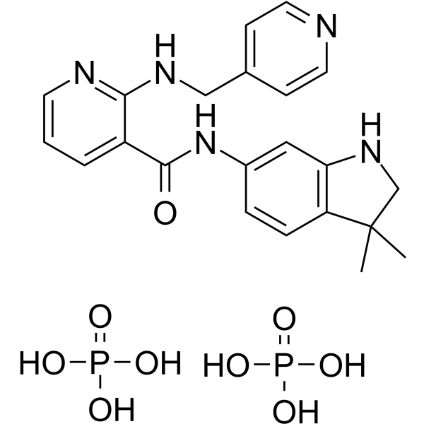 | 生物活性 | Motesanib Diphosphate (AMG 706 Diphosphate) is a potent ATP-competitive inhibitor of VEGFR1/2/3 with IC50s of 2 nM/3 nM/6 nM, respectively, and has similar activity against Kit, and is approximately 10-fold more selective for VEGFR than PDGFR and Ret. | ||||||||||||||||