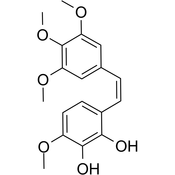 | 生物活性 | Combretastatin A-1 is a microtubule polymerization inhibitor that binds to the colchicine-binding site of tubulin. Combretastatin A-1 inhibits the Wnt/β-catenin pathway through tubulin depolymerization mediated AKT deactivation. Combretastatin A-1 exhibits anti-tumor and anti-vascular effects. | ||||||||||||||||