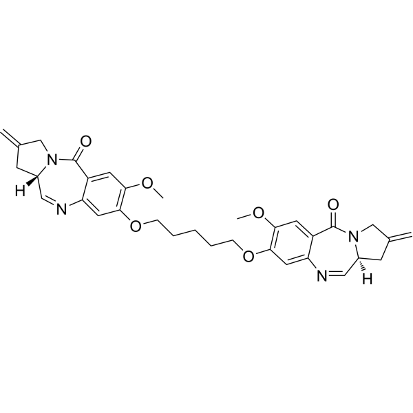 | 生物活性 | SG2057 (DRG16) is a PBD dimer containing a pentyldioxy linkage which binds sequence selectively in the minor groove of DNA forming DNA interstrand and intrastrand cross-linked adducts. SG2057 is a highly active antitumor agent. | ||||||||||||||||