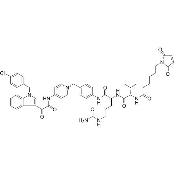 | 产品介绍 | MC-Val-Cit-PAB-Indibulin 是抗体偶联活性分子的一部分,由口服有效的微管蛋白合成抑制剂 Indibulin 和 ADC linker MC-Val-Cit-PAB 连接而成。 | ||||||||||||||||