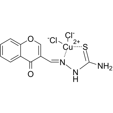 FPA-124,一种细胞通透性铜配合物,是选择性的 Akt 抑制剂,IC50 为 0.1 μM ,与 Akt 的蛋白同源性 (PH) 域和激酶结构域相互作用。FPA-124 诱导细胞凋亡 (apoptosis)。