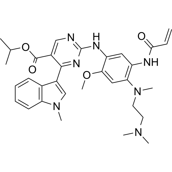 | 产品介绍 | Mobocertinib (TAK-788) 是一种口服有效并且不可逆的 EGFR/HER2 抑制剂。Mobocertinib 能选择性地 (相较于野生型 EGFR) 抑制含有 EGFRex20ins 的致癌突变体。Mobocertinib 可用于 NSCLC 的研究。 | ||||||||||||||||||||||||||||||||||||||||