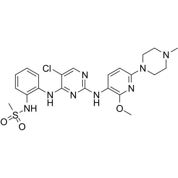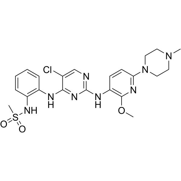 | 生物活性 | F-1 is a potent ALK and ROS1 dual inhibitor, suppresses phospho-ALK and its relative downstream signaling pathways, with IC50s of 2.1 nM, 2.3 nM, 1.3 nM and 3.9 nM for ALKWT, ROS1WT, ALKL1196M and ALKG1202R, respectively. | ||||||||||||||||