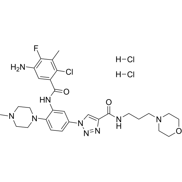 | 产品介绍 | DDO-2093 dihydrochloride 是一种有效的 MLL1 和 WDR5 蛋白-蛋白相互作用抑制剂 (IC50=8.6 nM; Kd=11.6 nM),具有抗肿瘤活性。DDO-2093 dihydrochloride 选择性抑制 MLL 复合物的催化活性。 | ||||||||||||
