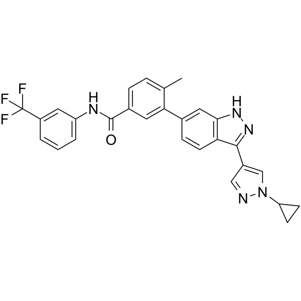 FGFR1/DDR2 inhibitor 1 (10-20 mg/kg; p.o.; once daily for 7 days) has profound anti-tumor efficacy in NCI-H1581 tumor model. 西域 has not independently confirmed the accuracy of these methods. They are for reference only.