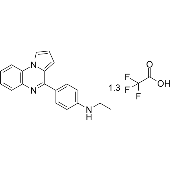 | 生物活性 | RI(dl)-2 TFA is a potent and selective RAD51-mediated D-loop formation inhibitor with an IC50 of 11.1 μM. RI(dl)-2 TFA does not influence RAD51 binding to ssDNA and inhibits homologous recombination (HR) activity in human cells (IC50 of 3.0 μM). |