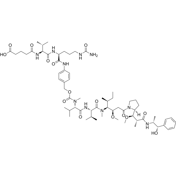 | 生物活性 | OH-Glu-Val-Cit-PAB-MMAE consists a cleavable ADC linker (OH-Glu-Val-Cit-PAB) and a potent tubulin inhibitor (MMAE). SuO-Glu-Val-Cit-PAB-MMAE can be used in the synthesis of antibody-drug conjugates (ADCs). | ||||||||||||||||