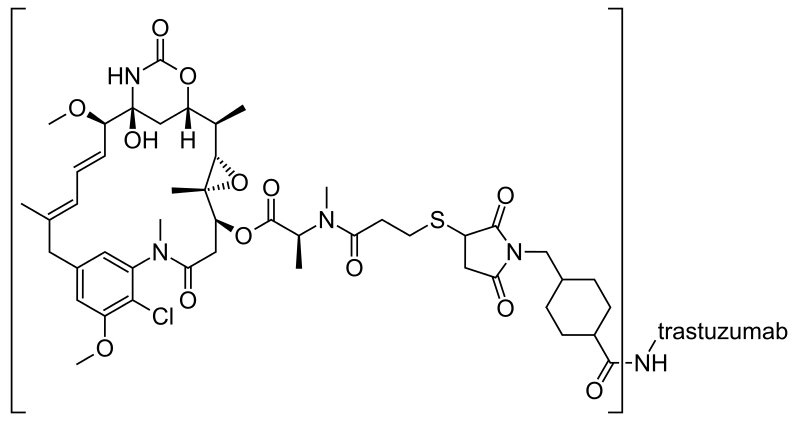 | 生物活性 | Trastuzumab emtansine (Ado-Trastuzumab emtansine) is an antibody-drug conjugate (ADC) that incorporates the HER2-targeted antitumor properties of trastuzumab with the cytotoxic activity of the microtubule-inhibitory agent DM1 (derivative of maytansine). Trastuzumab emtansine can be used for the research of advanced breast cancer. | ||||||||