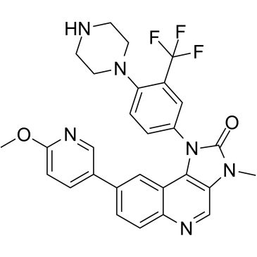 BGT226 (NVP-BGT226) 是一种 PI3K (针对 PI3Kα,PI3Kβ,PI3Kγ 的 IC50分别是4 nM,63 nM,38 nM ) /mTOR 双抑制剂,对人头颈癌细胞具有较强的生长抑制活性。