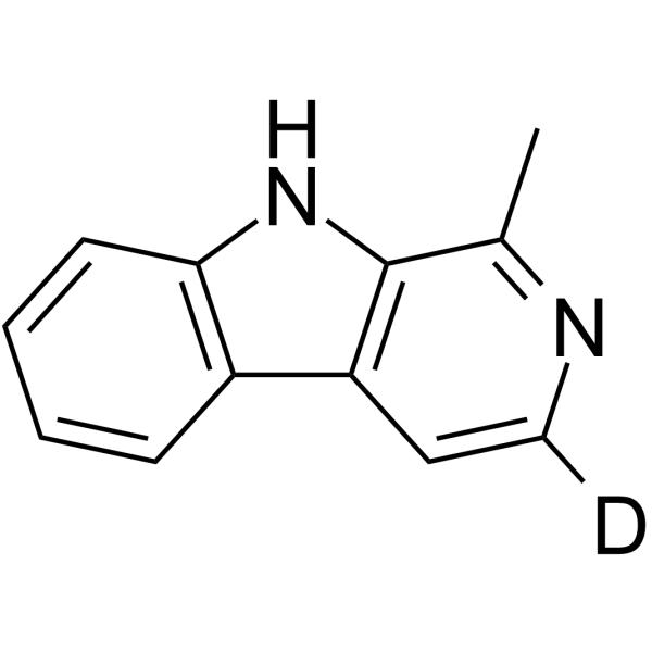 | 产品介绍 | Harmane-d 是 Harmane 的氘代物。Harmane,一种 β-咔啉生物碱 (BCA),是有效的神经毒素,可引起严重的动作震颤和精神病学表现。Harmane 对 I1 咪唑啉受体 (I1-Imidazoline receptor, IC50=30 nM) 的选择性是对 α2-肾上腺素受体 (IC50=18 μM) 的 1000 倍。Harmane 还是有效和选择性的单胺氧化酶抑制剂 (对 MAO A/B 的 IC50 值分别为 0.5 μM 和 5 μM)。 | ||||||||||||||||