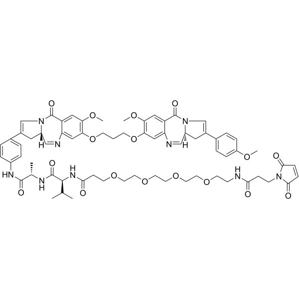 | 生物活性 | Mal-PEG4-VA-PBD is a agent-linker conjugate for ADC by using the antitumor antibiotic, Pyrrolobenzodiazepine (PBD), linked via Mal-PEG4-VA. |