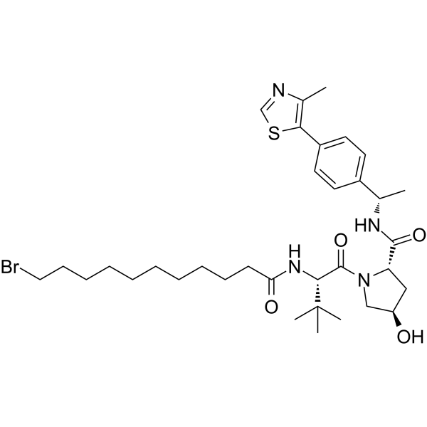 | 生物活性 | (S,R,S)-AHPC-Me-C10-Br is a synthesized E3 ligase ligand-linker conjugate. (S,R,S)-AHPC-Me-C10-Br incorporates a VHL E3 ligase linker and MS432 based on the MEK1/2 inhibitor PD0325901. |
