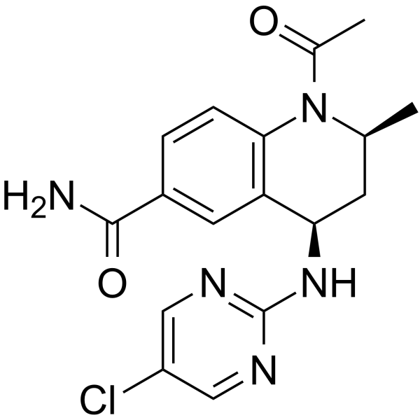 | 生物活性 | I-BET567 is a potent and orally active inhibitor of pan-BET candidate with pIC50s of 6.9 and 7.2 for BRD4 BD1 and BD2, respectively. I-BET567 has been demonstrated efficacy in mouse models of oncology and inflammation. | ||||||||||||||||||||||||||||||||||||||