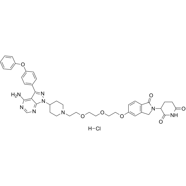 | 生物活性 | SJF620 hydrochloride is a PROTAC connected by ligands for Cereblon and Btk with a DC50 of 7.9 nM. SJF620 contains a Lenalidomide analog for recruiting CRBN. |