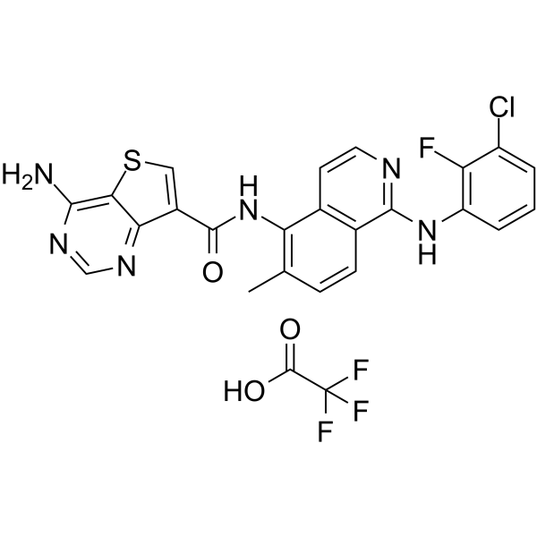 | 生物活性 | Belvarafenib TFA (HM95573 TFA) is a potent and pan RAF (Rapidly Accelerated Fibrosarcoma) inhibitor, with IC50s of 56 nM, 7 nM and 5 nM for B-RAF, B-RAFv600E and C-RAF respectively. |