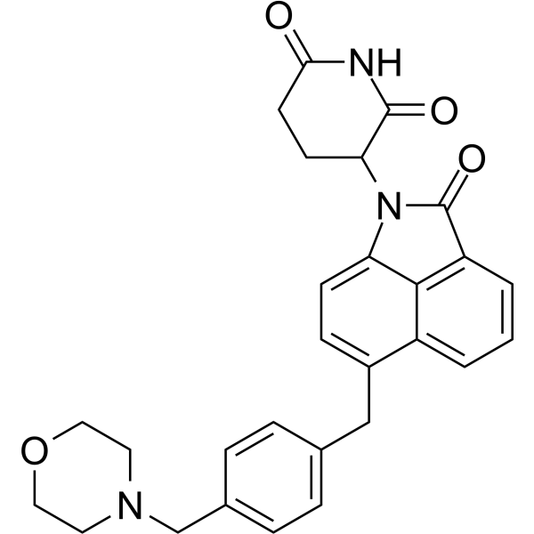 | 生物活性 | (Rac)-Cemsidomide ((Rac)-CFT7455) is a zinc finger transcription factors Ikaros (IKZF1) and Aiolos (IKZF3) degrader, acting via the ubiquitin proteasome pathway, with a GI50 of 0.05 nM for NCIH929.1 cells. (Rac)-Cemsidomide is the racemic isomer of Cemsidomide (HY-144841A) which is a IKZF1/IKZF3 degrader with anticancer activity. | ||||||||||||||||
