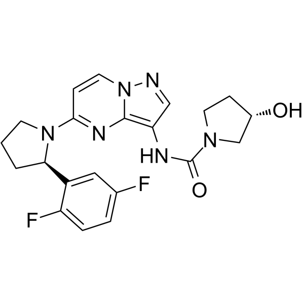 | 生物活性 | Larotrectinib (LOXO-101) is an ATP-competitive oral, selective inhibitor of the tropomyosin-related kinase (TRK) family receptors, with low nanomolar 50% inhibitory concentrations against all three isoforms (TRKA, B, and C). | ||||||||||||||||