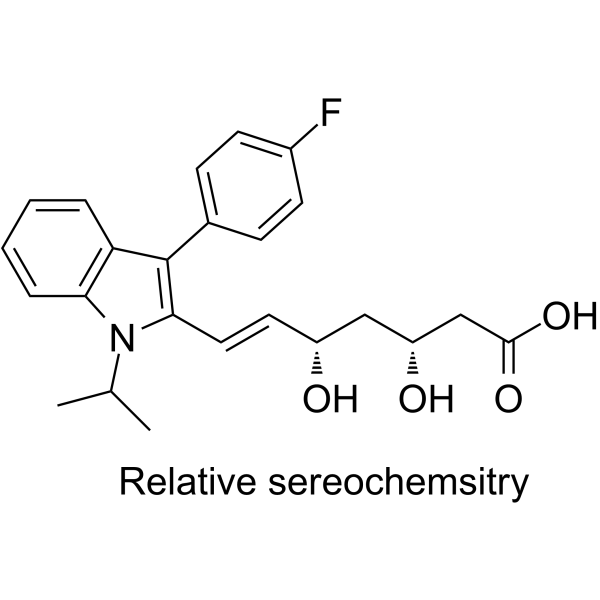 | 生物活性 | Fluvastatin (XU 62-320 free acid) is a first fully synthetic, competitive HMG-CoA reductase inhibitor with an IC50 of 8 nM. Fluvastatin protects vascular smooth muscle cells against oxidative stress through the Nrf2-dependent antioxidant pathway. |