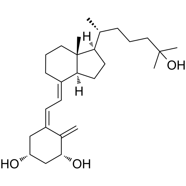| 生物活性 | Impurity B of Calcitriol, Calcitriol(1,25-Dihydroxyvitamin D3; Rocaltrol ) is the hormonally active form of vitamin D, Calcitriol is the active metabolite of vitamin D3 that activates the vitamin D receptor (VDR). IC50 value: Target: vitamin D receptor Calcitriol(1,25-Dihydroxyvitamin D3; Rocaltrol ) displays calcemic actions. Calcitriol stimulates intestinal and renal Ca2+ absorption and regulates bone Ca2+ turnover. Calcitriol (1,25-Dihydroxyvitamin D3; Rocaltrol )exhibits antitumor activity; Calcitriol(1,25-Dihydroxyvitamin D3; Rocaltrol ) inhibits in vivo and in vitro cell proliferation in a wide range of cells including breast, prostate, colon, skin and brain carcinomas and myeloid leukemia cells. | ||||||||||||||||