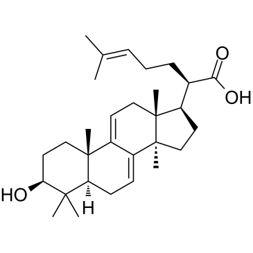 3-Dehydrotrametenolic acid,分离于茯苓菌核,是一种乳酸脱氢酶 (LDH) 抑制剂。3-Dehydrotrametenolic acid 促进体外脂肪细胞分化,在体内起胰岛素增敏剂的作用。3-Dehydrotrametenolic acid 诱导细胞凋亡,具有抗癌活性。