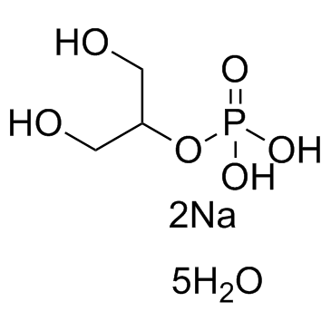 β-Glycerol phosphate disodium salt pentahydrate 是磷酸酶和张力蛋白同源物 (PTEN) 的抑制剂,来自专利US 20110002877 A1。