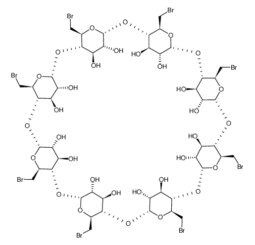 Octakis-(6-bromo-6-deoxy)-γ-cyclodextrin 是一种在伯侧全溴化的γ-环糊精,也是一种环糊精改性中常用的中间体。