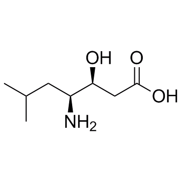 | 体外研究 | 他汀类药物是一种罕见的氨基酸,在胃蛋白酶抑制剂的序列中出现两次,胃蛋白酶抑制剂对胃蛋白酶和其他酸性蛋白酶具有活性。他汀也是先前提出的胃蛋白酶和其他酸性蛋白酶催化过渡态的类似物。 |