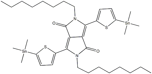 | 英文名称 | 2,5-Dioctyl-3,6-bis(5-(trimethylstannyl)thiophen-2-yl)pyrrolo[3,4-c]pyrrole-1,4(2H,5H)-dione |