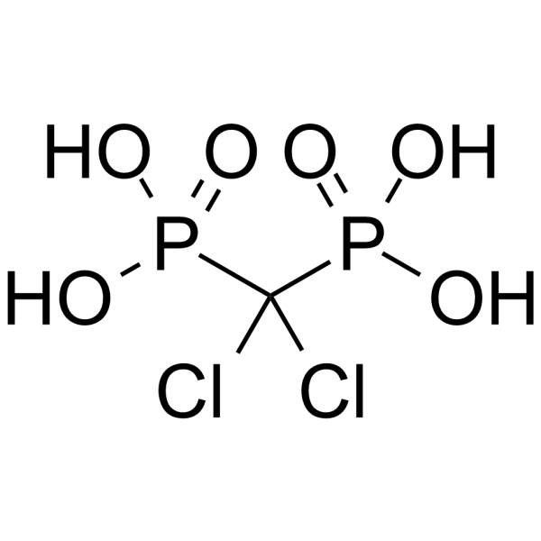 氯膦酸是一种口服活性双膦酸盐,用于研究骨质疏松症和与过度骨吸收相关的疾病。氯膦酸通过诱导破骨细胞凋亡抑制骨吸收。氯膦酸对维持或改善骨密度有效。