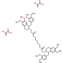 | 英文名称 | (1R,1'R)-2,2'-(3,11-Dioxo-4,10-dioxatridecamethylene)-bis-(1,2,3,4-tetrahydro-6,7-dimethoxy-1-veratrylisoquindline)-dioxalate |