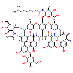 | 英文名称 | (1S,2R,19R,22S,34S,37R,40R,52R)-2-{[(2R,3R,4R,5S,6R)-3-(acetylamino)-4,5-dihydroxy-6-(hydroxymethyl)tetrahydro-2H-pyran-2-yl]oxy}-22-amino-5,15-dichloro-64-({(2S,3R,4R,5S,6R)-4,5-dihydroxy-6-(hydroxymethyl)-3-[(8-methylnonanoyl)amino]tetrahydro-2H-pyran-2 |