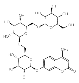 4-甲基香豆素基-β-D-龙胆三糖苷 ,4-methyl-7-[(2S,4S,5S)-3,4,5-trihydroxy-6-[[(2R,4S,5S)-3,4,5-trihydroxy-6-[[(2R,4S,5S)-3,4,5-trihydroxy-6-(hydroxymethyl)tetrahydropyran-2-yl]oxymethyl]tetrahydropyran-2-yl]oxymethyl]tetrahydropyran-2-yl]oxy-chromen-2-one